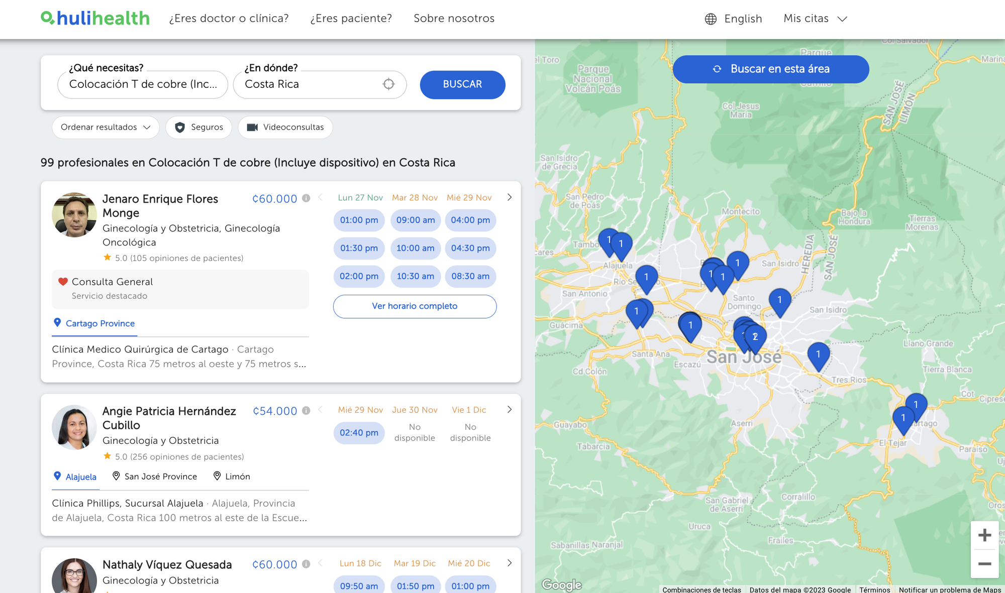 Si buscas en la plataforma HuliHealth la opción “colocación T de cobre”, podrás ver los diferentes precios que cobran los profesionales de salud en diferentes partes del país.